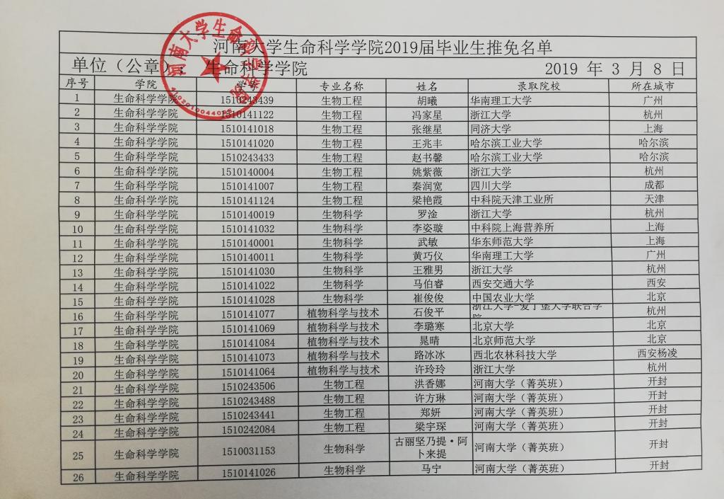 必赢国际437官网2019届毕业生推免名单