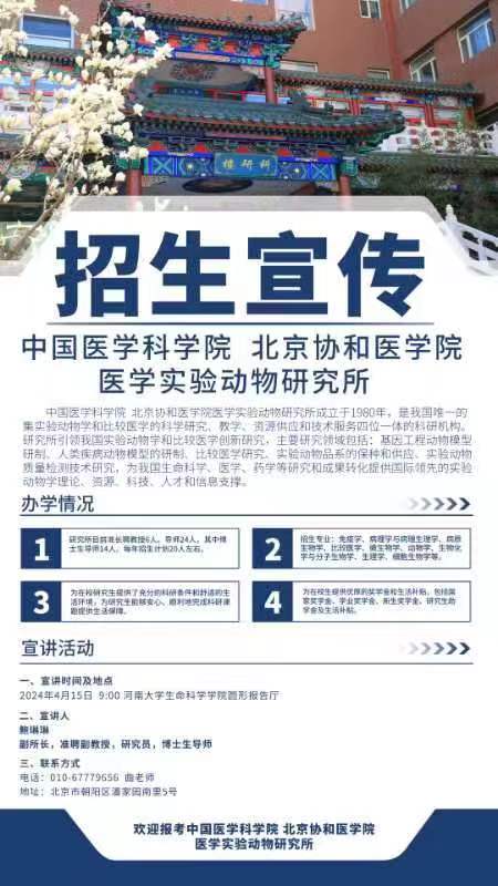 中国医学科学院 北京协和医学院 医学实验动物研究所优秀研究生招生宣传 必赢国际437官网专场