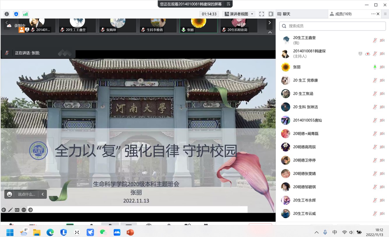首先,学院整个学工队伍集中学习了党的二十大精神,学习了学生危机事件的应对措施、最新学生管理要求、疫情和舆情的防控等,交流了疫情防控下各年级的学生教育管理心得,并对下步工作进行了安排部署。