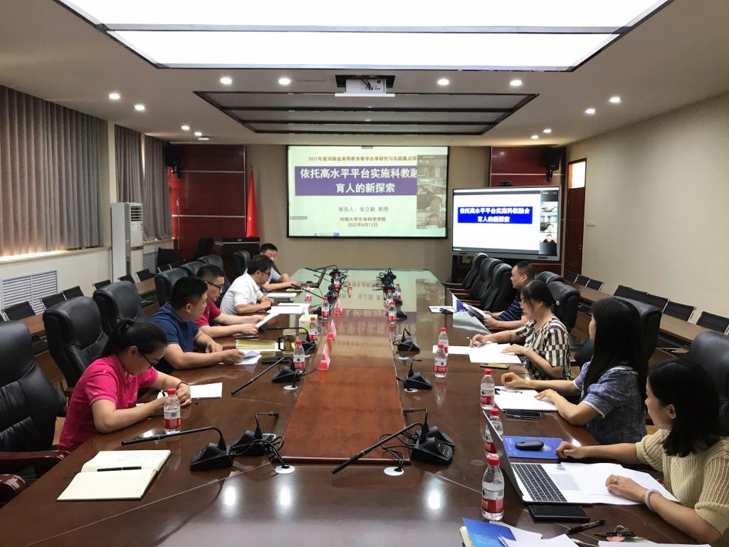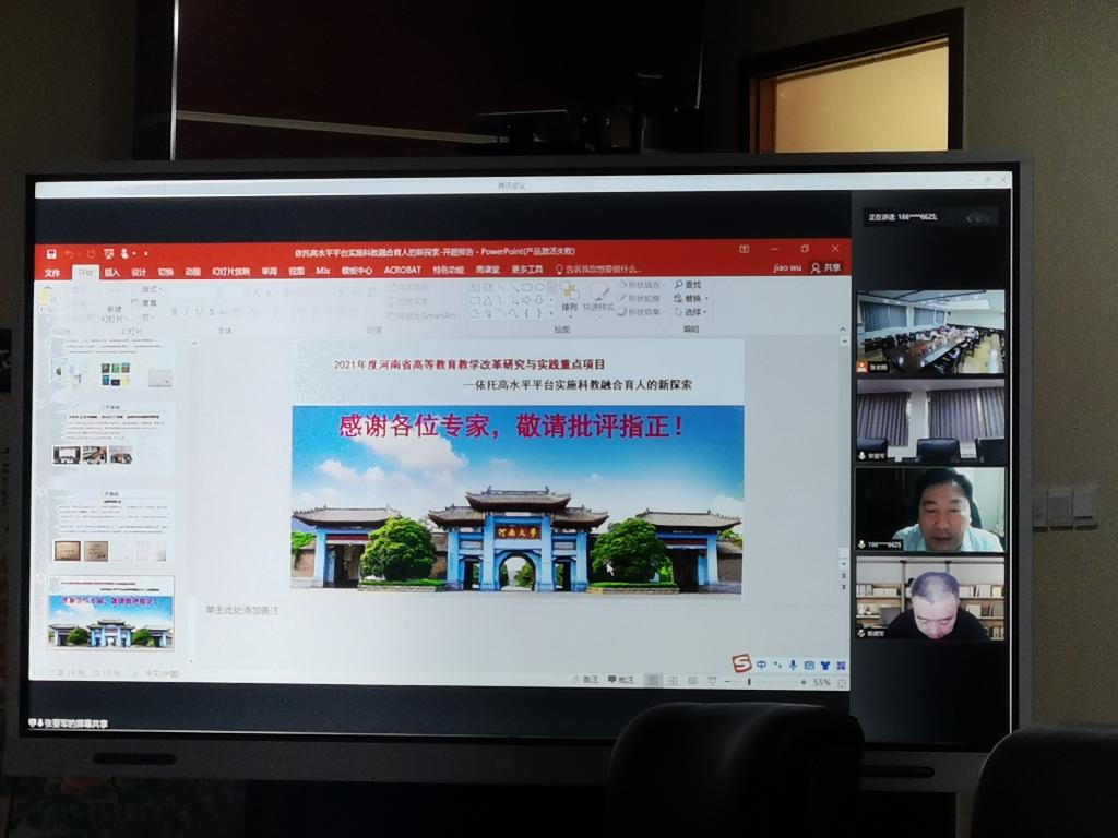 6月13日,必赢国际437官网举行2021年度河南省高等教育教学改革研究与实践重点项目“依托高水平平台实施科教融合育人的新探索”开题报告会。河南师范大学陈广文教授、陈建军教授,必赢国际437官网教务处处长张向东教授、副处长朱显峰教授、必赢国际437官网副院长赵海鹏教授作为专家评委,项目组成员、教务办等参加开题报告会。会议采用线上线下结合形式召开,教育部生物科学类专业教学指导委员会委员陈广文任专家组长,朱显峰主持报告会。