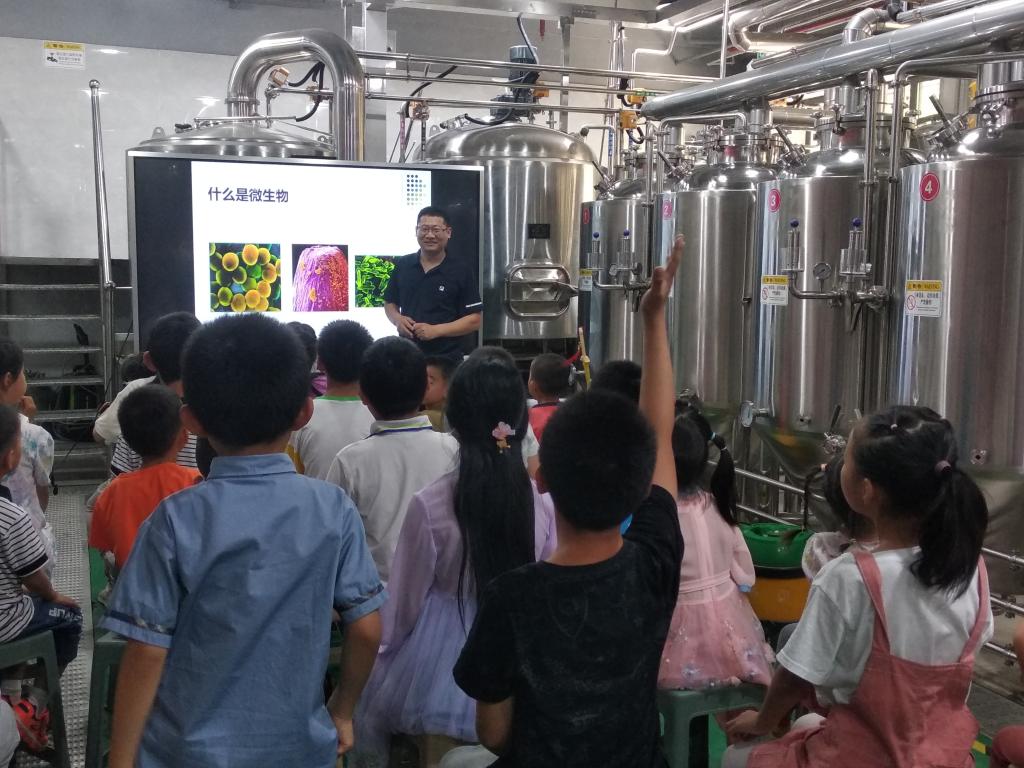 必赢国际437官网副院长赵海鹏带领小朋友们到学院一楼标本馆进行参观,为小朋友们讲解了部分植物和动物标本。参观过程中,标本馆中栩栩如生的动植物标本很快吸引了小朋友的目光,他们仔细地观察着标本,兴趣盎然、认真思考、互相讨论,不停地向赵老师询问着各种问题。学院生物工程系副主任李华带领小朋友们参观了学院的啤酒酿造车间,并为他们讲解了微生物的种类、何为微生物以及酿造啤酒的原料、过程等。小朋友们对啤酒酿造设备十分好奇,都想要知道设备罐里到底装的是什么,纷纷上前一探究竟。