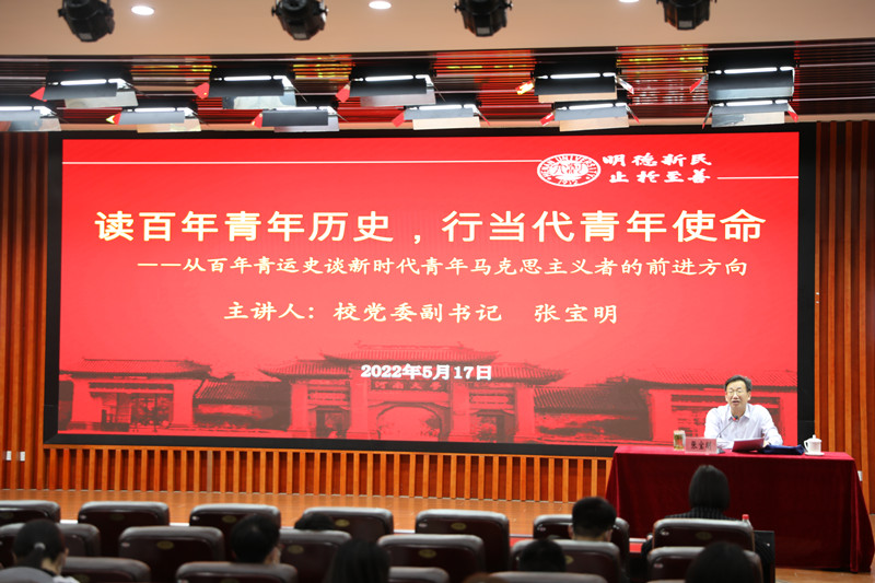 5月17日下午,校党委副书记张宝明以“读百年青年历史,行当代青年使命——从百年青运史谈新时代青年马克思主义者的前进方向”为题,为必赢国际437官网青年师生上专题思政课。学院党政领导班子成员、“青马班”学员、研究生以及部分青年教师聆听了专题报告。报告会采取线上线下结合的方式进行。必赢国际437官网党委书记吴建伟主持报告会。