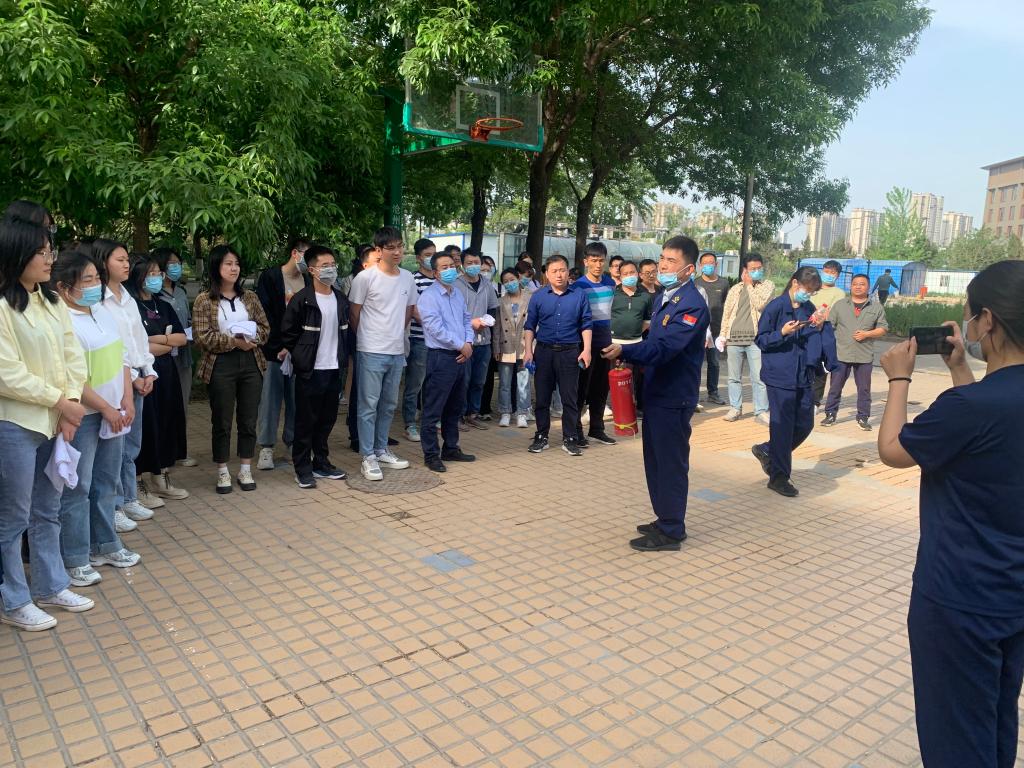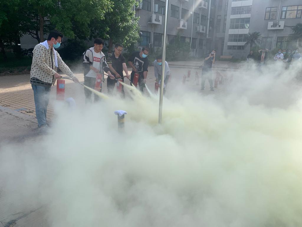 在预设的灭火器使用地点,市消防大队专家董耀庭实地向师生们演示如何有效使用灭火器及灭火的安全距离,二十多位师生进行了分组实操练习。