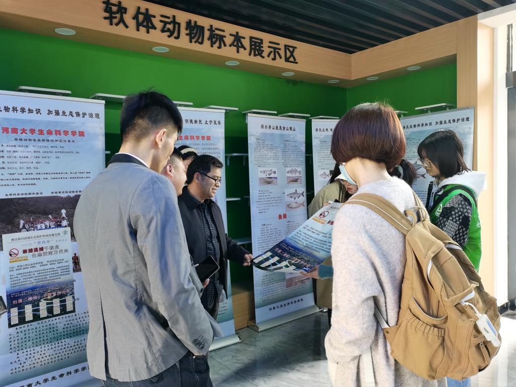 3月26日,春桐班、春桐学社成员在学院标本馆举办禁渔期科普展,介绍黄河禁渔政策,通过展板图文并茂的展示了开封黄河段常见鱼类资源。教务处副处长、“生物学科普实践”省级一流课程负责人朱显峰,副院长赵海鹏,学院团委书记张丽以及青年教师孙晓等和大批本科生参与。朱显峰、赵海鹏从课程角度就科普实践活动的开展形式,讲解注意事项和要点以及本次活动的具体科学知识等为春桐班、春桐学社讲解员进行了现场辅导。