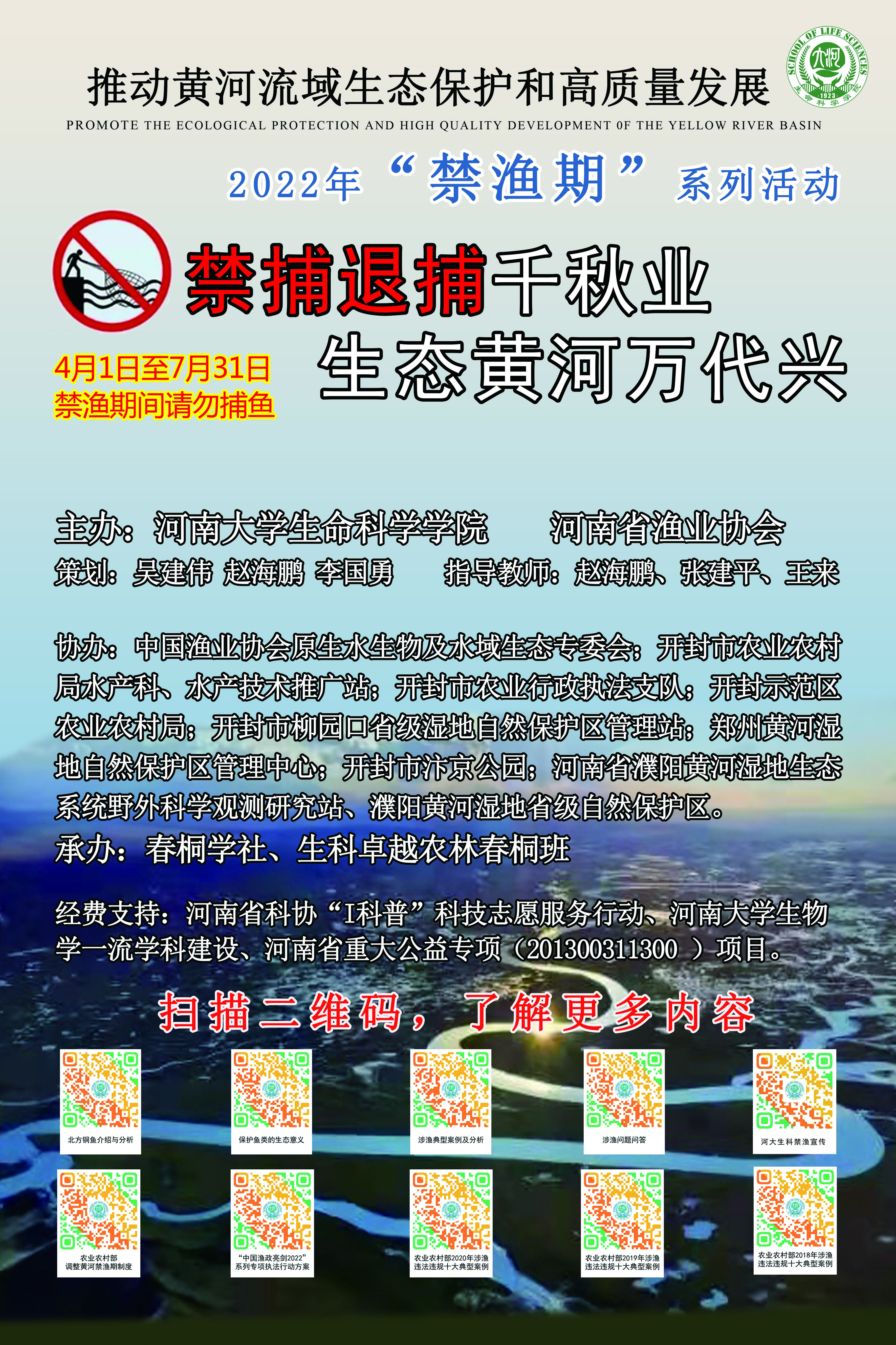 上述活动期间,必赢的自制禁渔宣传海报引起了广泛的关注和交口称赞,海报立足于“推动黄河流域生态保护和高质量发展”,围绕“禁捕退捕千秋业,生态黄河万代兴”主题,通过自制二维码将鱼类生态保护知识、涉鱼典型案例、黄河禁渔期制度以及专项执法行动方案等内容有机融入。