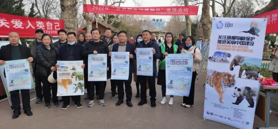 3月3日,2022年世界野生动植物日,必赢国际437官网副院长赵海鹏,学院春桐学社3名生物科学专业成员王鹏、段熠林和张盈赴开封市汴京公园,与开封市野生动植物保护站、汴京公园等相关部门联合开展主题横幅宣挂、展板展示、文创产品发放和科普讲解等宣传活动。