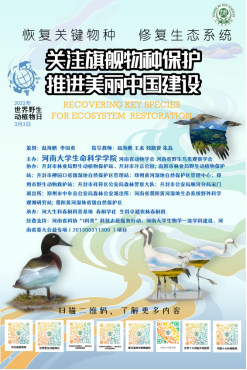 活动期间,必赢师生展示张贴中国野生动物保护协会发往必赢协助宣传的全国统一海报外,还重点展示并张贴了自制海报。自制海报结合河南尤其开封黄河水域物种分布实际,围绕本次“世界野生动植物日”全球主题和我国主题而设计制作,通过自制二维码的形式将开封周边尤其黄河水域旗舰物种、所学知识和生物多样性保护理念以及黄河流域生态保护意识等有机融入。海报设计精美,理念新颖,参加活动的开封市各县区的野生动植物保护行政主管部门工作人员对海报交口称赞,并纷纷索取用于返回县区后张贴宣传用。