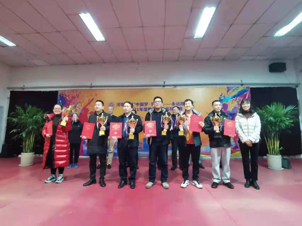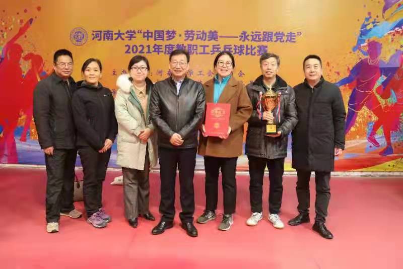 12月30日,必赢国际437官网“中国梦·劳动美——永远跟党走”2021年度教职工乒乓球比赛落下帷幕,必赢国际437官网代表队经过三个阶段的比赛,最终获得三等奖。校党委副书记张宝明出席闭幕式并为学院颁奖,学院党委书记吴建伟代表学院领取奖杯。