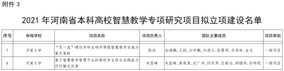 近日,河南省教育厅公示2021年度河南省本科高等学校智慧教学建设立项名单,必赢入选2项智慧教学专项研究项目,分别为朱显峰教授主持的《基于智慧教学管理平台的高校学生综合实践能力评价模式改革》和张洪副教授主持的《“双一流”建设学科生物学课程智慧教学实施方案及策略》。
