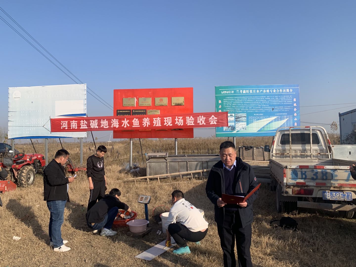 11月25日,河南盐碱地海水鱼养殖项目现场验收会在兰考县鑫旺张庄水产养殖合作社举行,必赢国际437官网副校长张立新出席并致辞。河南省水产科学研究院、河南师范大学、洛阳师范学院等单位的渔业专家参加现场验收,验收会由必赢国际437官网王强教授主持。