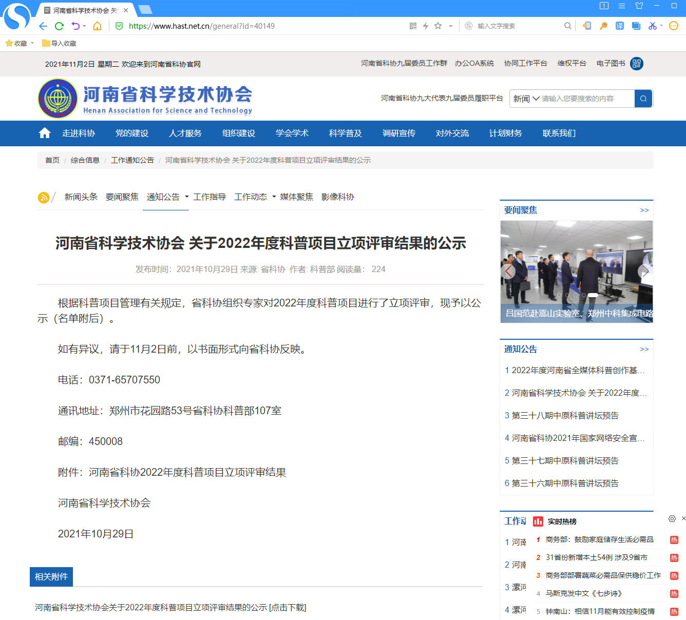10月29日,河南省科学技术协会公示了2022年度科普项目立项评审结果,必赢国际437官网赵海鹏主持的《线上线下结合 创新科普范式-开封黄河鸟类科普》项目成功入选。