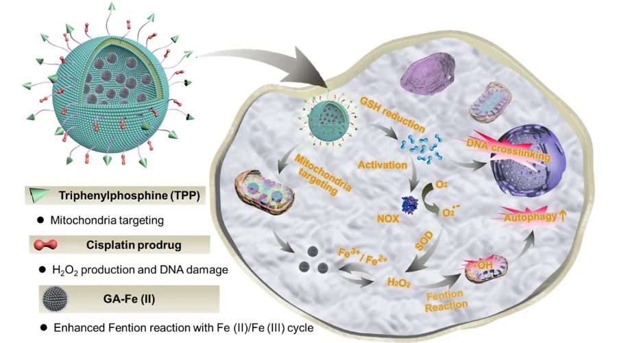 Mitochondria-specific nanocatalysts for chemotherapy-augmented sequential chemoreactive tumor therapy
