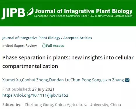 近日, 必赢张立新教授团队在植物学权威期刊Journal of Integrative Plant Biology发表题为“Phase separation in plants: new insights into cellular compartmentalization”的综述论文。(https://doi.org/10.1111/jipb.13152)
