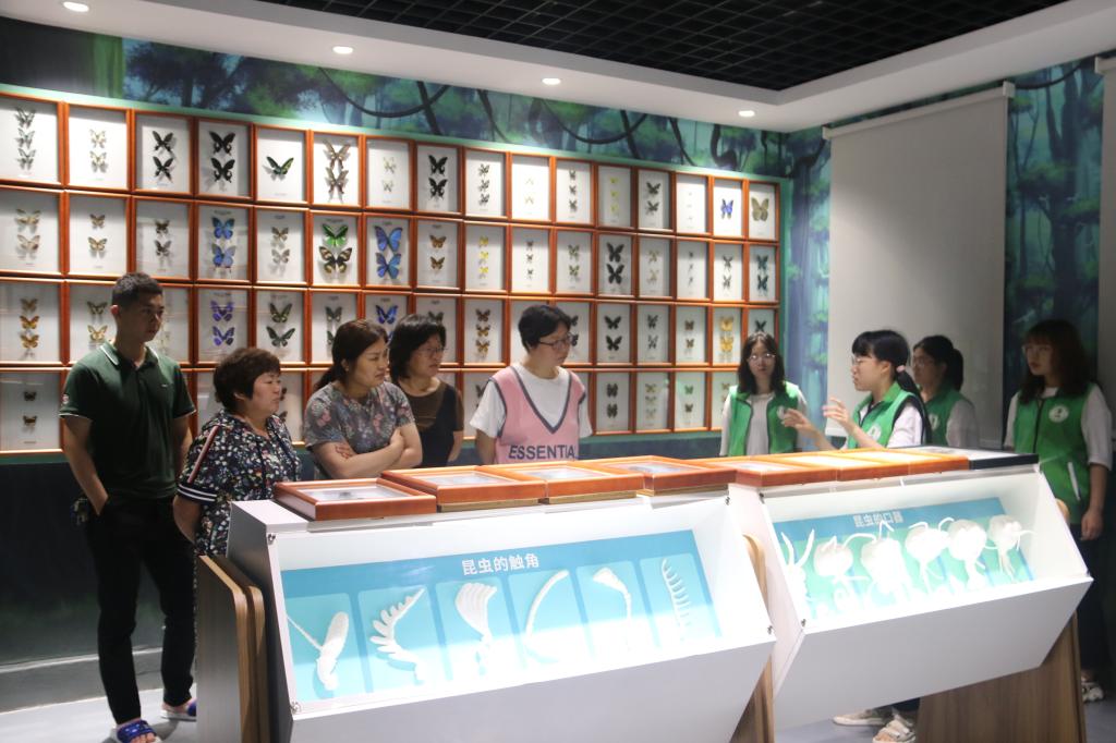 7月20日下午,必赢国际437官网“三下乡”社会实践团队来到汴京公园开展动植物知识科普和保护宣传活动。在必赢和汴京公园共建的生物标本馆,团队成员结合标本和此前围绕着开封柳园口湿地省级自然保护区开展实地调研的成果,发挥专业特长,对哺乳类、鸟类以及昆虫的分类识别、保护等进行详细讲解。曹颍和刘雪燕同学对讲解了鸟类的鉴别特征、生活习性和相关法律保护条例;刘保清同学以5种典型哺乳动物为例讲解了哺乳动物的主要特征;白采弘和李佳依同学分别对昆虫的口器、足以及昆虫触角的类型和作用、常见昆虫识别等进行了讲解;朱晓宇同学就动植物标本采集、制作和保存进行了介绍。讲解介绍兼具专业性和趣味性,在场人员不时提出问题进行互动,交流热烈。