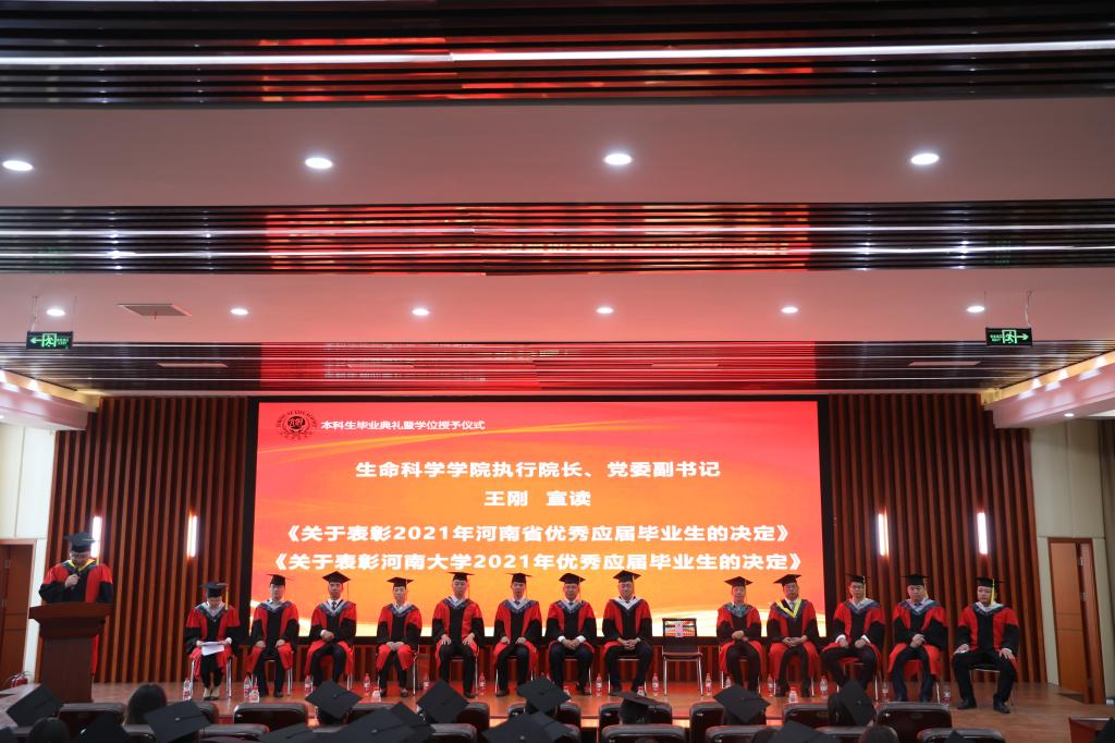 学院执行院长、党委副书记王刚宣读《关于表彰2021年河南省优秀应届毕业生的决定》、《必赢国际437官网关于表彰2021年优秀应届毕业生的决定》。