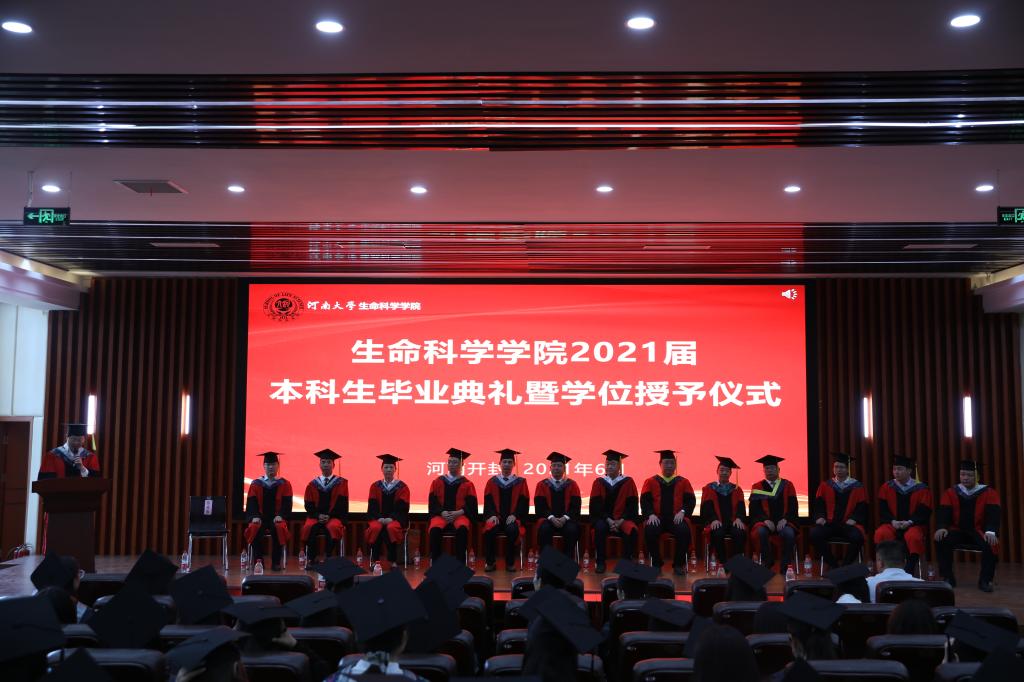 走过四载春秋,历经一千四百多个日夜,在河大的悠悠岁月,就这样倏忽而过。毕业生代表2017级生物工程专业刘啸林上台发言,他深情回顾了四年的大学时光,衷心地感谢老师们的悉心培育。青春的脚印留在校园的小路上,笑语欢歌留在花坛的馨香中,母校的每一个角落都珍藏着属于他们的记忆,难舍难分,未来成长的脚步不会停歇,他表示将会牢记校训和院训,继续积极进取,在实现自身价值的同时,报效祖国和社会。最后代表全体毕业生向学院表达美好的祝愿。