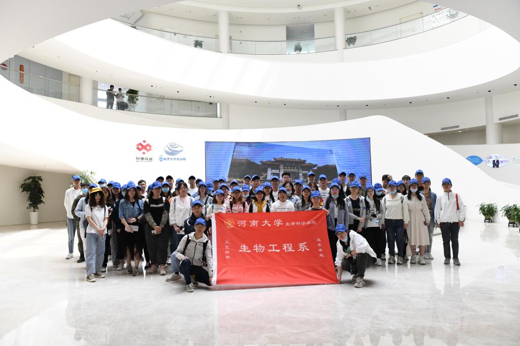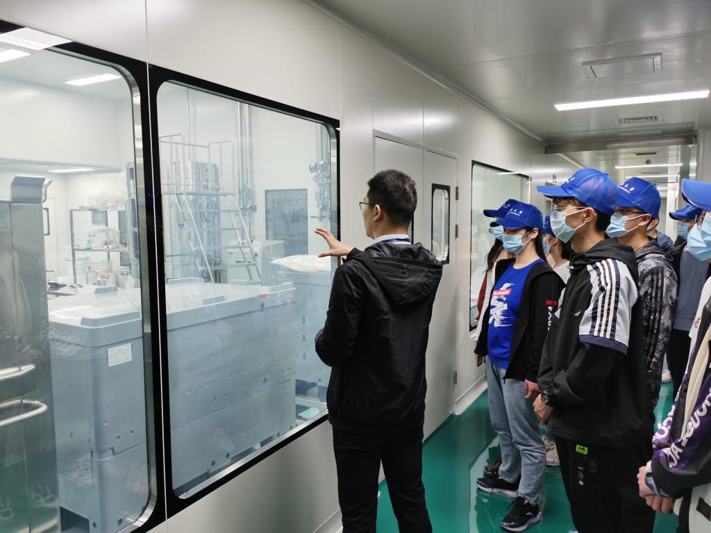 师生们首先参观了郑州临空生物医药园展示中心与大分子药物CDMO平台,详细听取了航空港实验区生物医药产业近年来的发展情况介绍,着重了解了临空生物医药园的四大核心产业、创新CXO一体化平台服务体系、园区建设运营情况与发展前景、园区企业情况等。实习学生们认真听取介绍、积极发言探讨,对航空港实验区生物医药产业创新发展的良好态势表现出了浓厚兴趣。随后,实习队伍来到临空生物医药园入园企业河南尚泰生物科技有限公司及郑州晟斯生物科技有限公司,在企业负责人的带领下,观摩了尚泰公司的医学检验实验室、细胞治疗工程研究中心、GMP实验室以及晟斯生物的创新生物药研发中心,对生物医药科技的创新研发与生产应用有了更加深入、全面的认知。