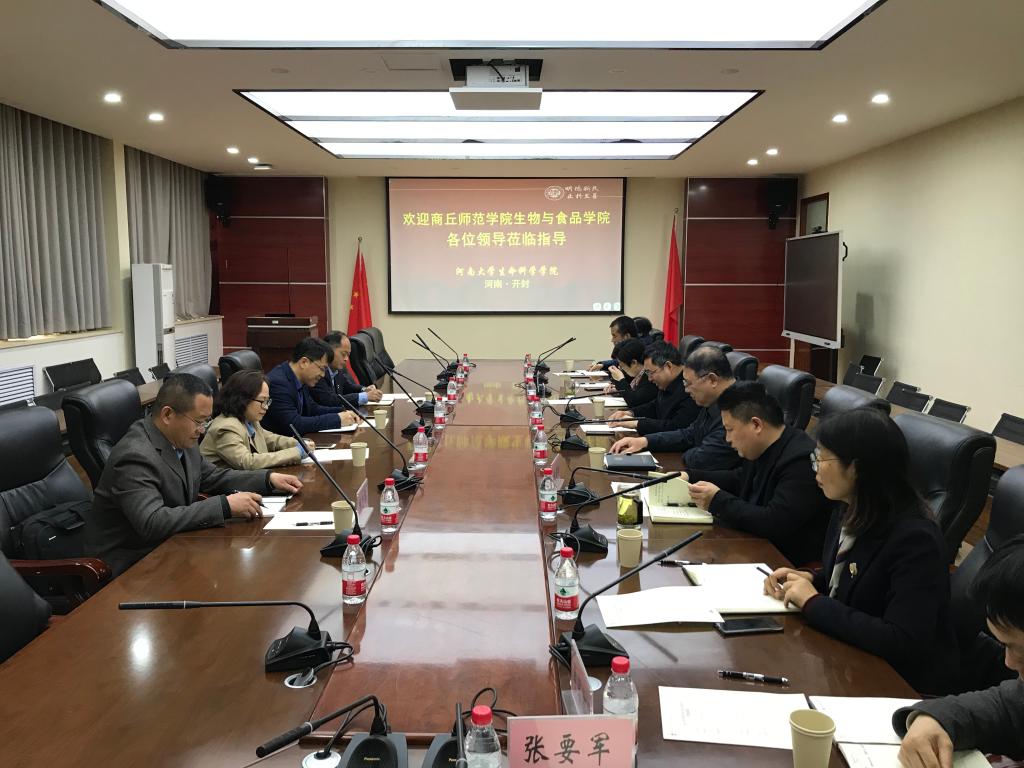 赵东保首先对周庆峰一行的到访表示欢迎,简要介绍了必赢国际437官网生科院的发展历程和生物学一流学科建设取得的成效,希望双方就本科教学、学生管理、平台建设等方面进行相互借鉴。周庆峰介绍了商丘师范学院生物与食品学院拔尖创新人才培养的做法、成效和即将开展的生物科学师范专业认证工作的准备情况。赵海鹏和张亚歌分别就师范专业认证的材料准备和学生动员等方面介绍了经验做法。之后,与会双方就人才培养、师资队伍建设、专业认证和下一步人才培养合作领域等方面进行了深入交流。本次交流为进一步深化双方合作奠定了坚实基础。