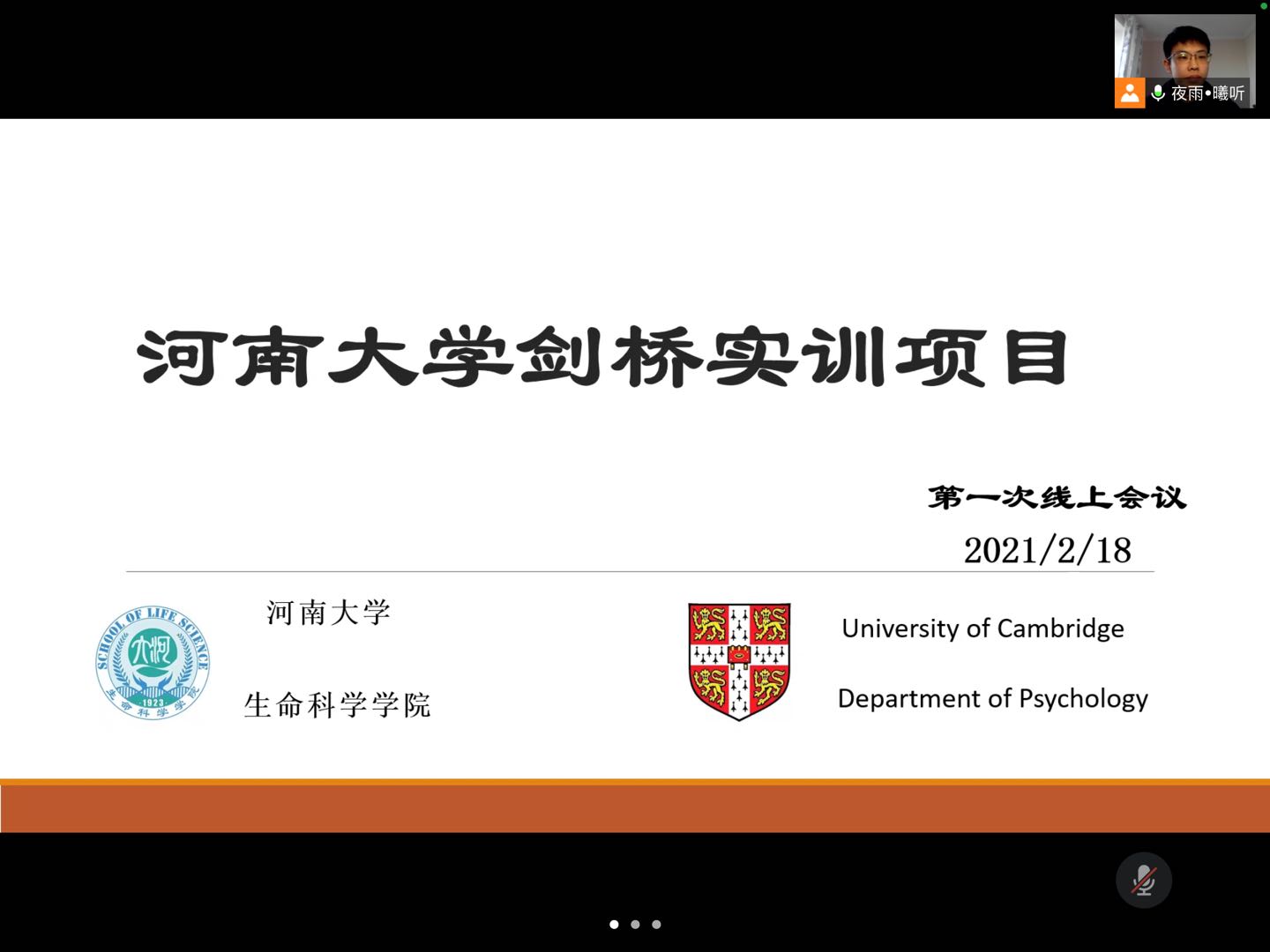 2月19日上午,借助腾讯会议平台,必赢召开首届剑桥大学线上实训项目总结暨讨论会。必赢国际437官网副院长赵海鹏、院长助理拔尖人才与国际交流办公室主任李志芳和15名参训同学参加了本次会议,会议由2018级生物科学明德班学生陈奕昂主持。