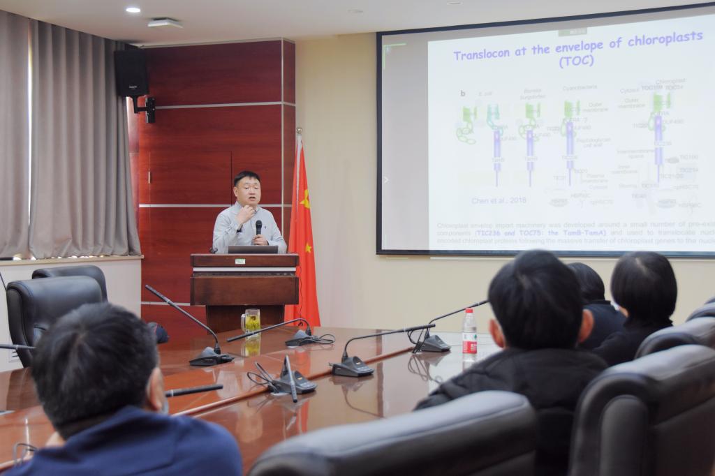咬定青山不放松,脚踏实地加油干。2021新年伊始,以“增进学者友谊、促进学术创新、推进‘一流’建设”为旨归的“必赢国际437官网生物&医学午茶会”(Henan University,Biweekly BioMed Seminar,简称“HU-BBS”) 总第33期、2021年第1期,于1月14日在必赢国际437官网B201学术报告厅举办,必赢国际437官网院长张立新教授应邀做“相分离驱动叶绿体蛋白转运”主题报告。来自必赢国际437官网、数学与统计学院、物理与电子学院、化学化工学院、医学类相关学院和棉花生物学国家重点实验室、省部共建作物逆境适应与改良国家重点实验室、天然药物与免疫工程河南省重点实验室、纳米材料工程研究中心等科研机构专家学者近50人在现场聆听了精彩学术报告,并面对面与主讲嘉宾开展热烈讨论,校内外多名专家学者和广大硕博研究生通过腾讯会议在线参加研讨。