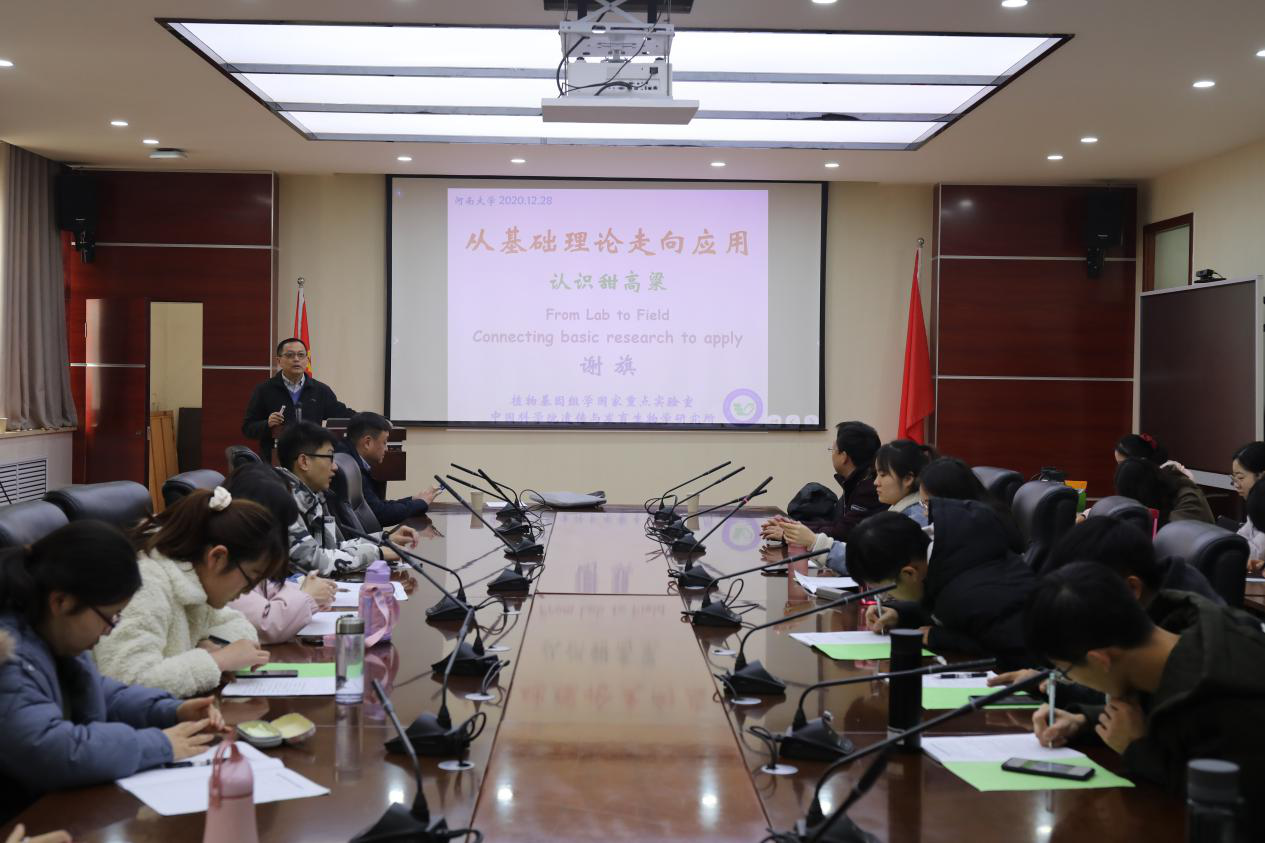 2020年12月28日上午,总第175期、2020年第13期“生物学前沿学术交流研讨会”(Biology cutting-edge Academic Exchange Seminar,简称“BAES”)在生科院B201举行。中科院遗传与发育研究所,特聘教授,国家杰出青年基金获得者谢旗应邀在此作题为“从基础理论走向应用-认识甜高粱”的学术报告。来自必赢国际437官网生物学的研究生聆听了报告。报告会由张立新老师主持。