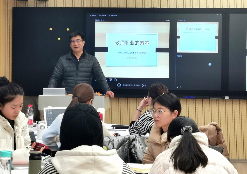2020年12月20日下午,必赢国际437官网学科教学(生物)专业组织的学术报告在生科院智慧教室305举行。郑州大学第二附属中学张俊谋在此作题为“教师的职业素养”的学术报告。此次报告会由张彤老师主持,必赢国际437官网的学科教学(生物)专业全体研究生参与。