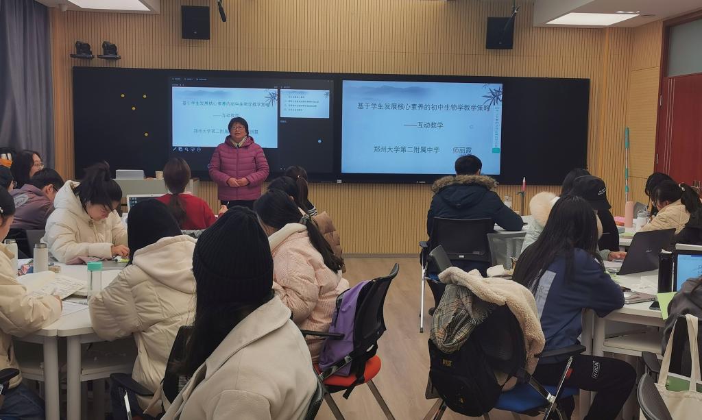 2020年12月20日上午,必赢国际437官网学科教学(生物)专业组织的学术报告在生科院智慧教室305举行。郑州大学第二附属中学师丽霞在此作题为“核心素养视角下初中生物教学策略”的学术报告。此次报告会由张彤老师主持,必赢国际437官网的学科教学(生物)专业全体研究生参与。